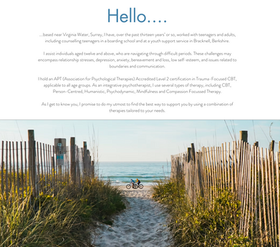 I would have any trouble recommending Verity if you are looking for Psychotherapy or Counselling. She is based in Surrey, England. However, she offers her services via Zoom if you're not close by or prefer this.